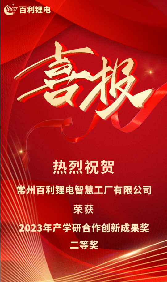 百利鋰電榮獲“2023年產學研合作創(chuàng)新成果獎二等獎”